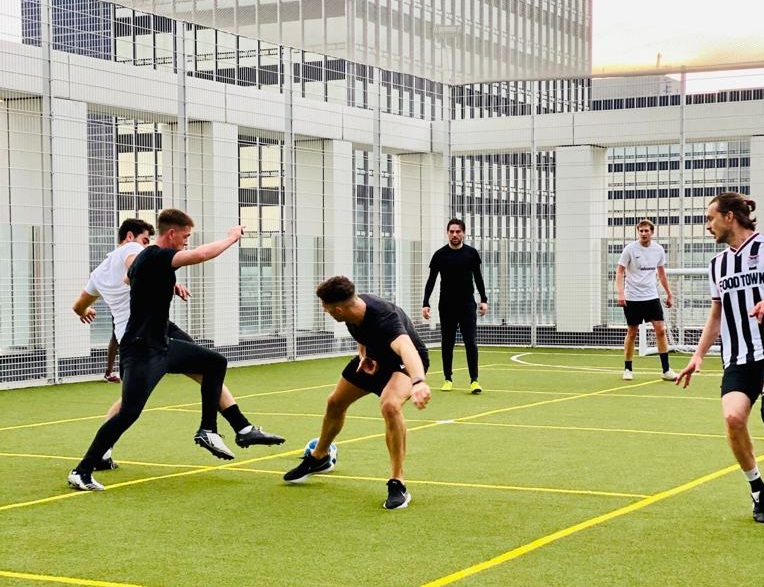 Play above the skyline. A five-a-side pitch with Manchester views that make every match feel like a win. Bookable for residents, open year-round.